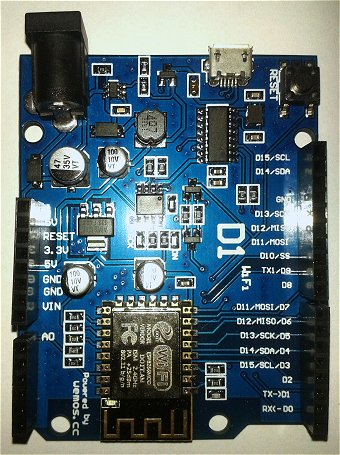 Unter der Bezeichnung "Wemos D1 Wifi Arduino UNO komp. Board mit WLAN ESP8266 ESP-12E Mini Wifi on Board" wurde für 6,65 Euro inkl. Versand bei ebay einen Arduino D1 mit WLAN-Funktion gekauft.
