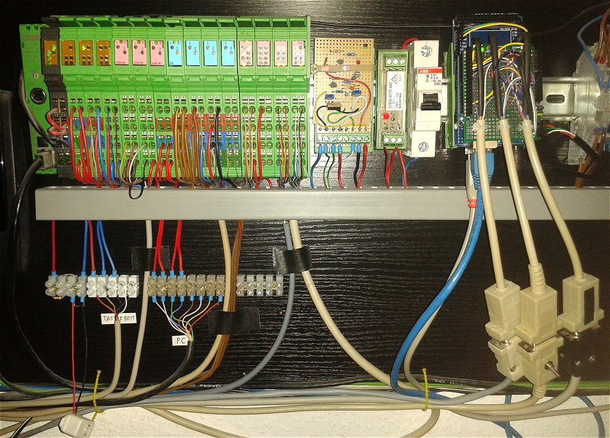 Der Arduino sitzt nun auf der gleichen Hutschiene wie der Phönix-Regler.