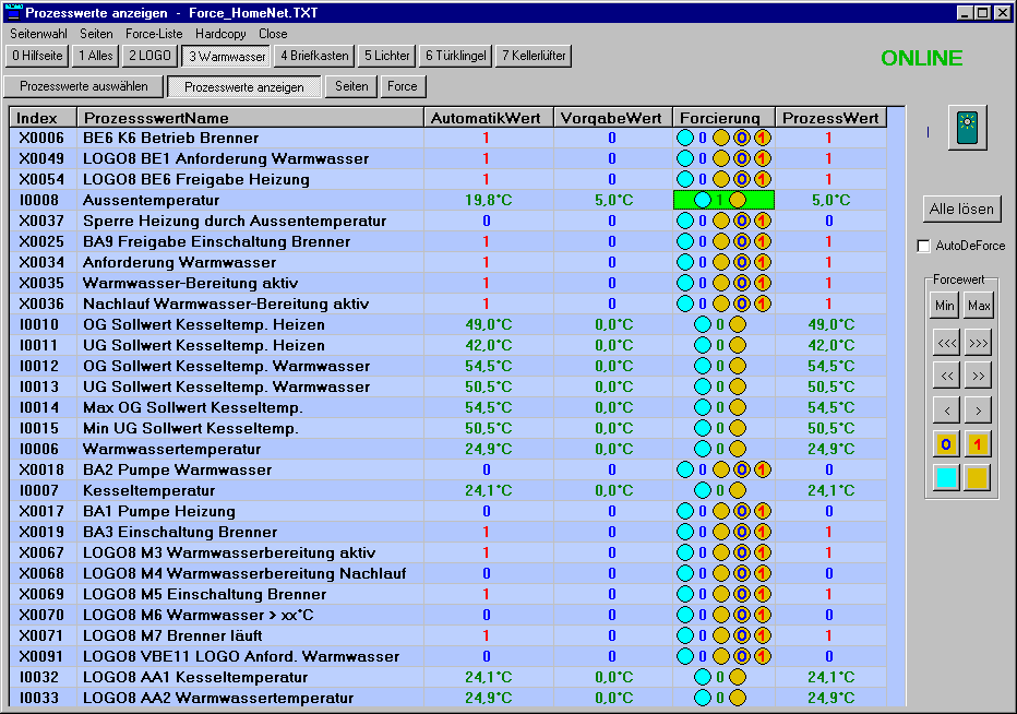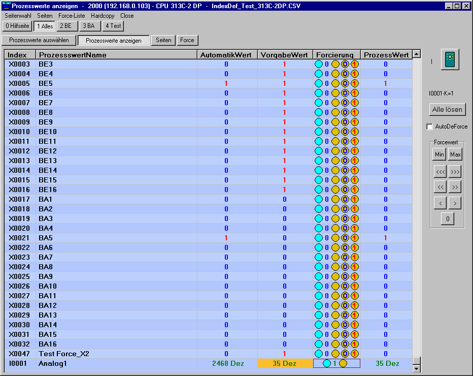 - die Prozesswerte auf dem PC als File aufzeichnen.